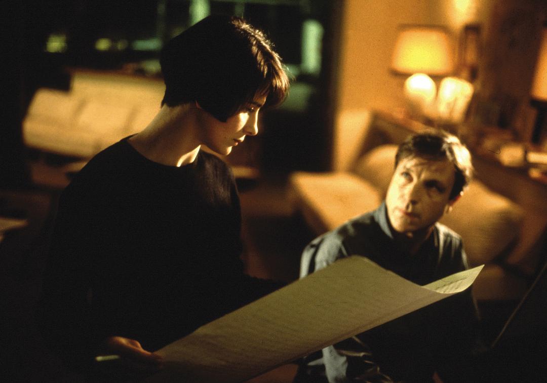 电影开篇就是一个极具冲击力的车祸场景。刺眼的车灯、尖锐的刹车声、朱莉惊恐的面部特写,这些元素在蓝色的滤镜下显得格外冰冷。车祸后,朱莉试图通过割断与过去的一切联系来获得自由:她卖掉房子,丢弃丈夫的乐谱,甚至尝试自杀。然而,这些决绝的行为恰恰暴露了她被过去所困的困境。